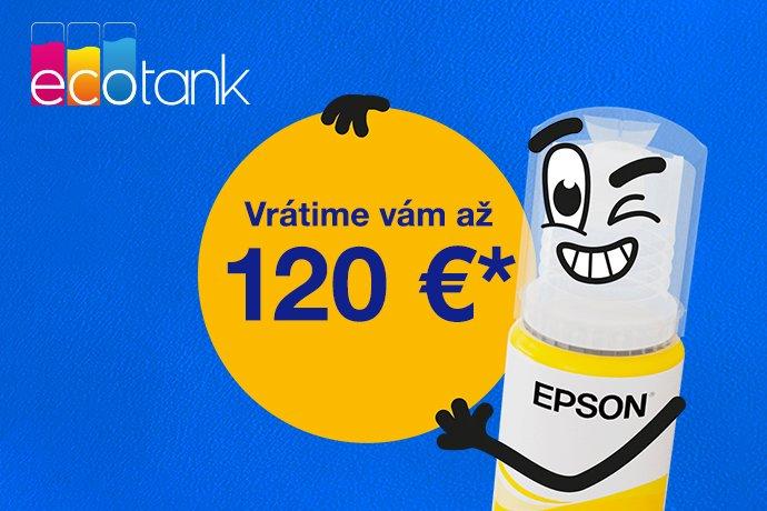 Získajte naspäť až 120 € za kúpu vybraných tlačiarní EcoTank v období 1. 1. 2026 do 31. 3. 2026.